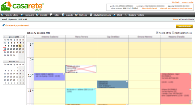 OBIETTIVI: Casarete Group, realtà immobiliare da poco nata sul territorio palermitano, ha scelto Os2 come partner non soltanto per la comunicazione (realizzazione del concept del logo, immagine coordinata, carpette istituzionali, sito web, rivista mensile) ma anche per l’organizzazione del lavoro dei vari dipendenti nelle varie sedi dislocate nel capoluogo siciliano. Il committente ha infatti richiesto a Os2 un complesso progetto che consentisse alla forza lavoro di gestire e organizzare al meglio le proprie attività quotidiane (appuntamenti, contatti, to-do e così via), ma anche di censire e reperire tutti gli immobili e i contatti di clienti, partners, collaboratori e non solo.