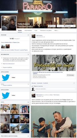 Totò si è rivolto a Os2 per la gestione della sua Pagina Facebook ufficiale. Il canale, attualmente seguito da quasi 10000 fan, ha un pubblico in costante crescita. La gestione della pagina prevede una selezione attenta dei contenuti e una cura particolare al modo in cui questi vengono presentati.