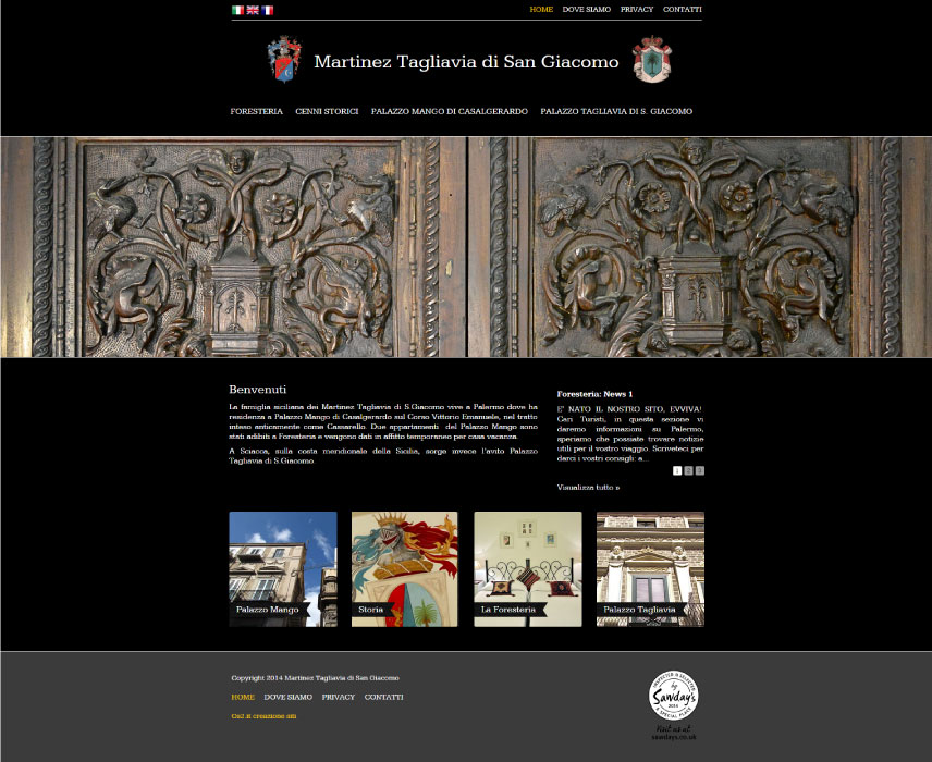 La famiglia Martinez – Tagliavia si è affidata a Os2 per la realizzazione di un sito per fornire agli utenti tutte le informazioni sull’affitto turistico dei due appartamenti che compongono la Foresteria della Cattedrale, creata all’interno di Palazzo Mango, ma non soltanto. Attraverso dettagliate sezioni sulla storia della famiglia e delle residenze, il sito doveva anche servire da punto di riferimento per divulgare notizie sulla storia dei Martinez-Tagliavia, e preziose informazioni per i turisti.