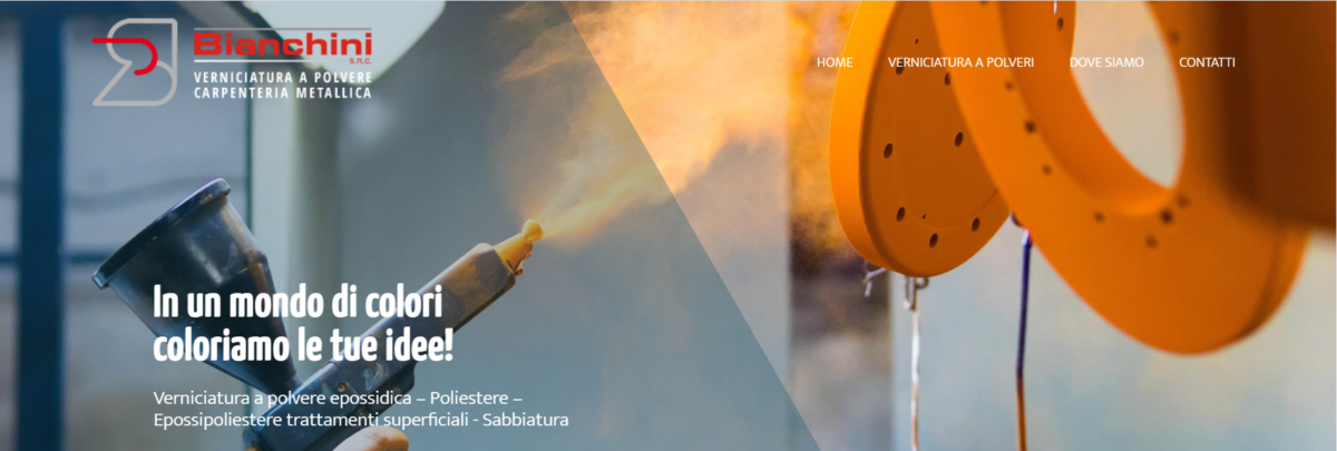 Il sito web Bianchini s.n.c. propone un’interfaccia semplice e colorata, con una homepage riportante le informazioni e i servizi proposti dall’azienda. Una sezione è dedicata alla verniciatura a polveri, servizio in cui l’azienda è particolarmente specializzata. Dopo una breve introduzione alla tecnica utilizzata, è riportata una gallery di alcuni dei lavori svolti. Le sezioni dove siamo e contatti, fondamentali da inserire all’interno di ogni sito internet, permettono all’utente di localizzare l’azienda e di contattarla agevolmente per richiedere informazioni.