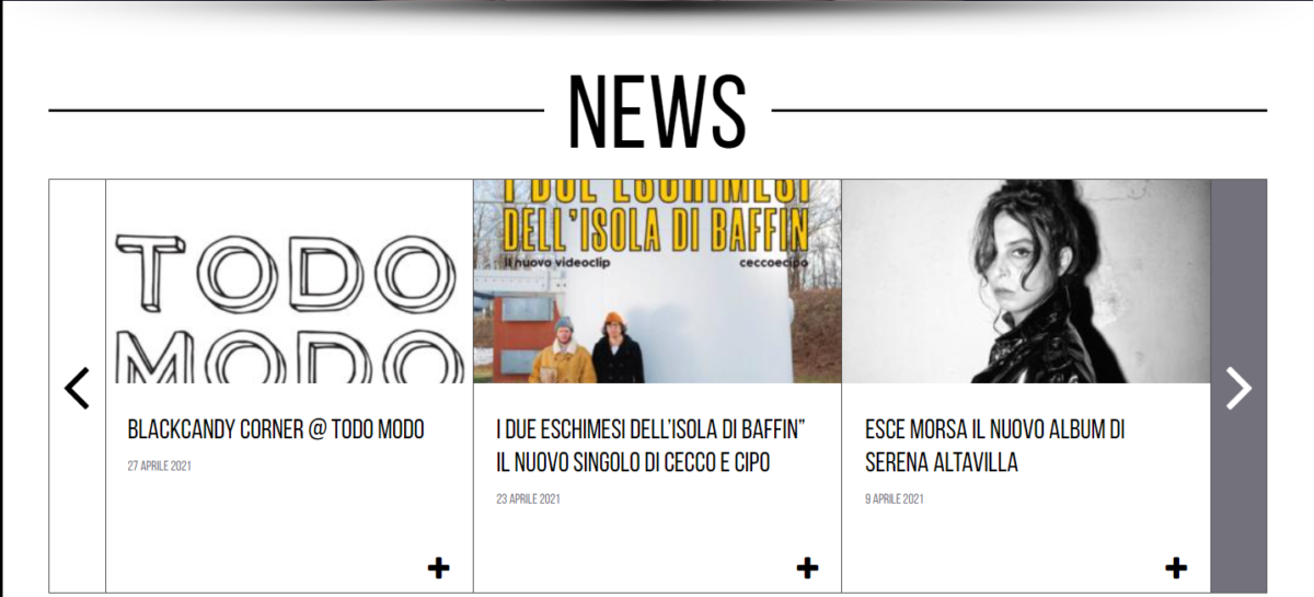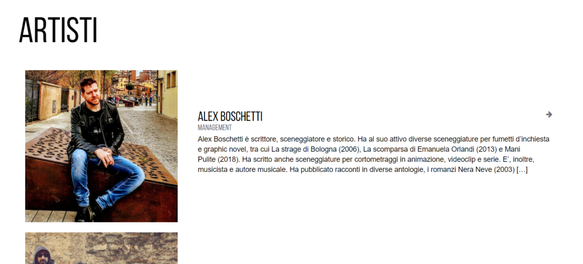 Continuando la navigazione nel sito web, l’utente potrà visionare nella categoria artisti le diverse informazioni su musicisti, compositori e scrittori, ma anche sulle produzioni video con cui collabora Black Candy.